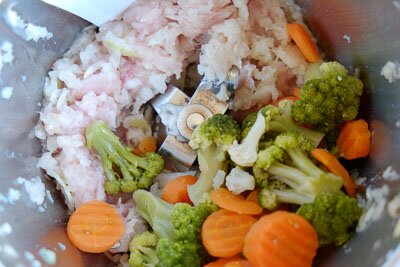 Пропустите через мясорубку или измельчите в блендере филе индейки и овощи. Добавьте специи и соль по желанию.