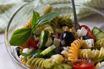Раньше я не считала пасту хорошим ингредиентом для салата. Но этот салат с пастой, фетой, оливками и свежими овощами меня покорил. Дайте ему часок постоять в холодильнике, чтобы итальянская заправка сделала свое дело, и вы с легкостью умнете две порции. :)