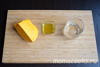 Тыкву вымойте, очистите от кожуры и нарежьте кубиками. Выложите противень фольгой, положите тыкву и полейте оливковым маслом. Перемешайте руками, чтобы все кусочки были смазаны маслом.