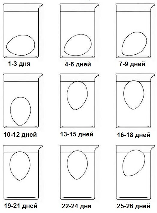 Несвежие яйца опускаются в воду очень медленно, либо не тонут вообще. Это происходит потому, что в тупой части яйца есть пузырек с воздухом и со временем в нем накапливаются газы.